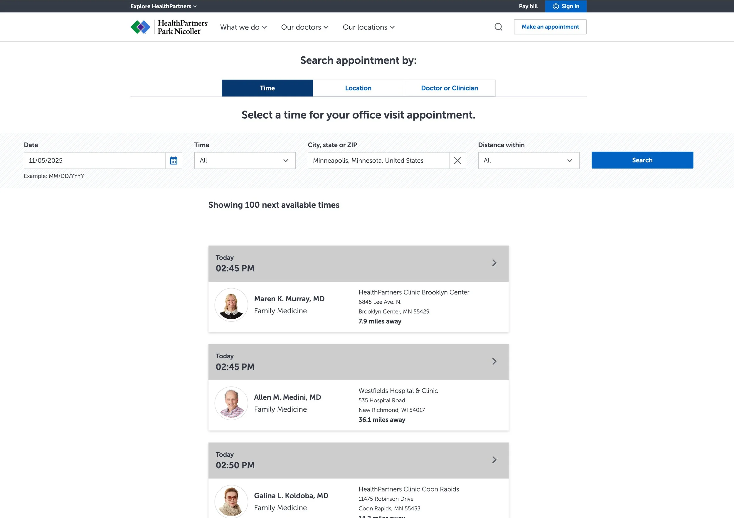 Once refined, the feature was successfully launched in both the online scheduling flow and the Find Care directory.